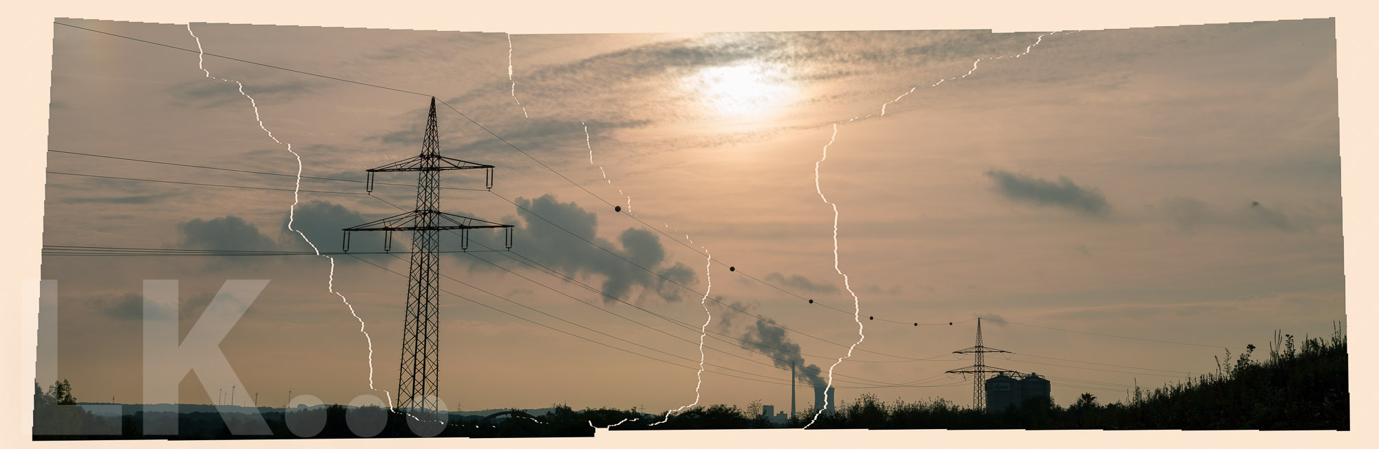 Photoshop bestimmt bei der Berechnung eines Panoramas (man hat verschiedene Grundoptionen), wie die Einzelbider zusammengefügt werden. Meistens haut das auch ganz gut hin – manchmal aber auch nicht – wie bei diesem Bild. Feine Hochspannungsleitungen zum Beispiel scheinen ab und zu ein Problem zu sein – sie passten nicht nahtlos zusammen.